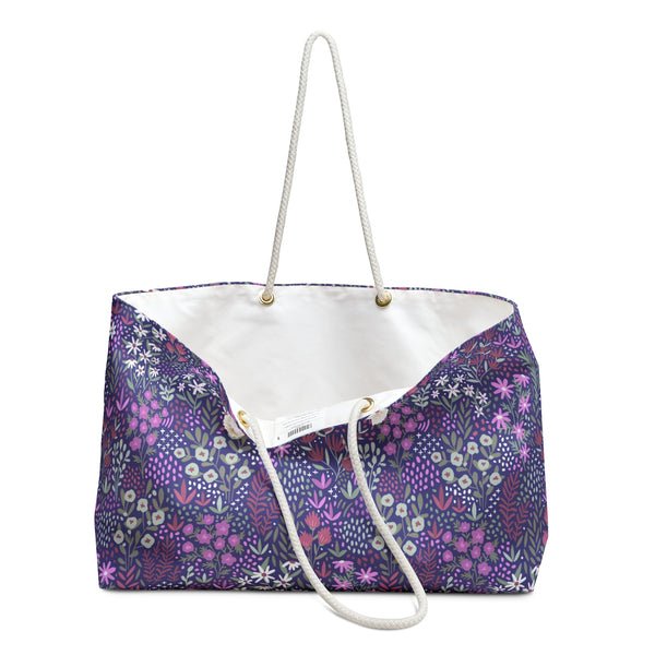 My Purple Garden Weekender Tote is the perfect thing for your weekend at the beach or in town. Fresh, original, and oh so pretty, the wide-mouthed, durable bag holds a generous amount of personal items and is easily held by its thick rope handles.