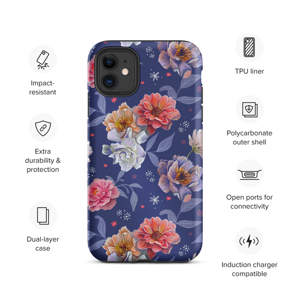 Protect your phone with a work of art using a durable, dual-layered case. One of my favorite patterns, Midnight Blooms showcases Makewells florals with an eye catching color scheme.