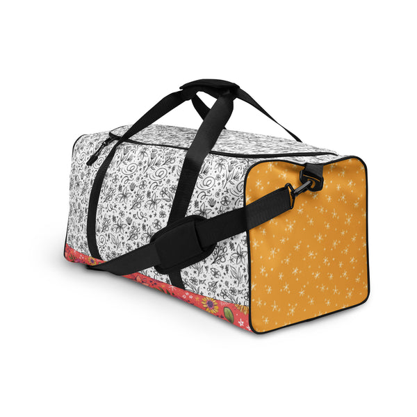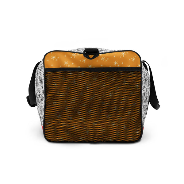This is your dream duffle bag! With a bold Makewells pattern, this bag is the perfect companion for every occasion—take it with you when traveling, running daily errands, or going to the gym. The bag is spacious and will keep all your stuff neat and organized with its multiple pockets, including one with a zipper for your most valuable possessions. Adjust the padded shoulder strap when the bag’s helping you carry heavier things, and continue your daily run without a worry!