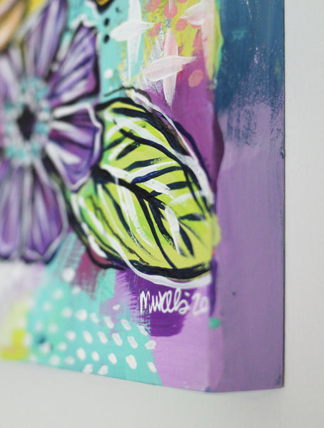 This piece is from my 2020 Fall Collection: Joyful Bouquets. One of fourteen paintings in the collection, Joyful Bouquet Eight is a little square of happy. Scribbles, patterns, colors and brushstrokes all got together to bring a smile to your face.
