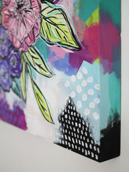 This piece is from my 2020 Fall Collection: Joyful Bouquets. One of fourteen paintings in the collection, Joyful Bouquet Four is for a purple lover. Expressive brushstrokes, vivid colors and fun patterns all combine to make you smile each time you lay eyes on it. :)