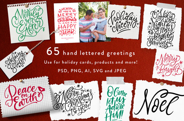 All the holiday lettering you'll ever need! This set includes both Christmas and general Holiday greetings, all hand lettered in my whimsical style!