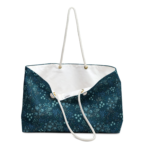 This gorgeous floral pattern paired with an oversized Weekender Tote is perfect for your weekend at the beach or in town. The wide-mouthed, durable bag holds a generous amount of personal items and is easily held by its thick rope handles.
