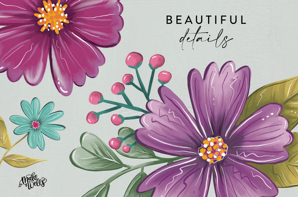 30 individual floral illustrations as PNG and JPEG files (approx 3000 x 3000 pixels.)